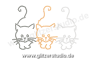 Strass Glitzermotive '3 Katzen' zum aufbügeln für Ihre Ideen. Die Strassmotive verfügen über eine Klebebeschichtung, welche bei einer Temperatur von ca. 120°C schmilzt und mit dem darunterliegenden Stoff waschfest verbindet.